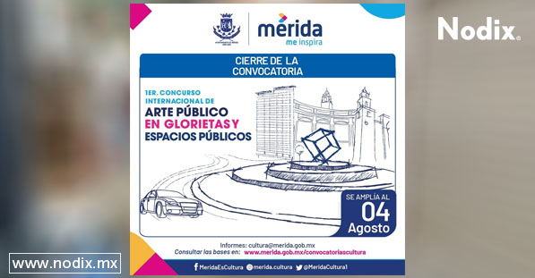 Mérida, 5 de mayo del 2020. El Ayuntamiento de Mérida ampliará el plazo de recepción de proyectos del Primer Concurso Internacional de Arte Público en Glorietas y Espacios Públicos hasta el próximo 4 de agosto, debido a la contingencia sanitaria que prevalece en el municipio a causa del COVID-19.