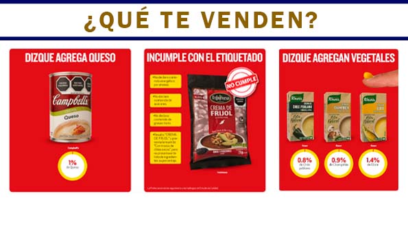 Algunas sopas envasadas tipo crema que se venden en el mercado nacional tienen una “pintadita” de vegetales, como el caso de tres productos de la marca Knorr que resultaron con el menor porcentaje de verdura, entre 0.8% y 1.4%, reveló un estudio del laboratorio de la Procuraduría Federal del Consumidor (Profeco).