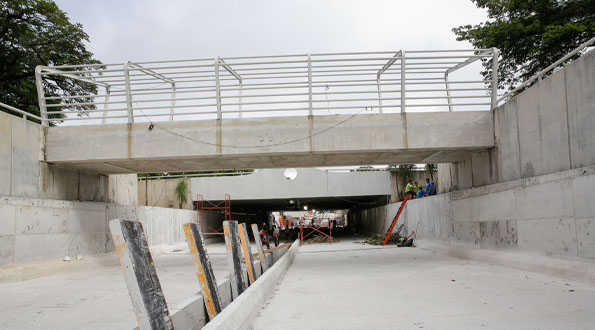 Mérida, Yucatán a 25 de octubre de 2021.- Pese a las lluvias de esta semana, los trabajos y acciones claves para rehabilitar el Paso a Desnivel, ubicado en la avenida Prolongación Paseo de Montejo con Circuito Colonias, se realizaron sin contratiempos.