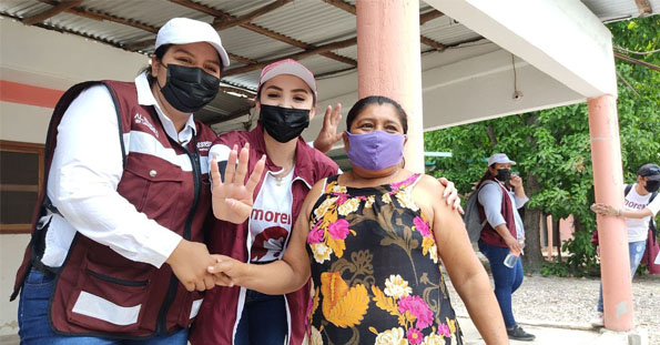 Tenabo, Campeche a 17 de abril 2021.- En su visita a la colonia San Pedro, la candidata de Morena a la Alcaldía de Tenabo María del Carmen Uc Canul, pidió sumarse al equipo de Morena en torno al proyecto que encabeza la candidata a la Gubernatura Lic. Layda Sansores, el Lic. José Luis Flores por la Diputación Distrito I, y Omar Talango por la Diputación por el Distrito VII, ya que son los únicos candidatos que proponen romper cadenas y generar un avance real para Tenabo.