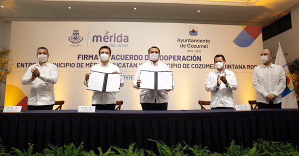 Mérida, 20 de noviembre de 2020. Ante el panorama de incertidumbre que nos ha tocado vivir, es indispensable hacer uso de todo el talento y la creatividad para desarrollar mecanismos que nos permitan ofrecer un mayor bienestar a la población y, en este contexto, cobra especial relevancia la colaboración entre municipios para avanzar hacia la reactivación económica, afirmó el alcalde Renán Barrera Concha.