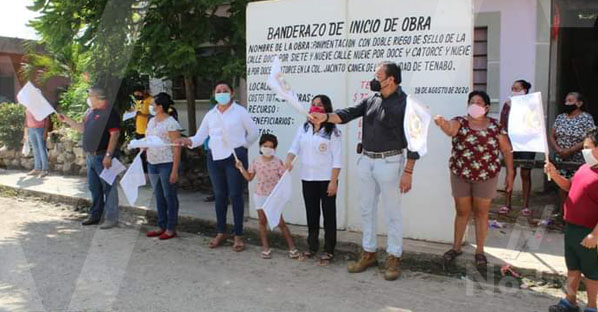 Tenabo, Camp. 18 de agosto del 2020.- Dando seguimiento a los trabajos para atender el rezago de infraestructura en la ciudad, la Alcaldesa María del Carmen Uc Canul, dio el banderazo de inicio a las obras de pavimentación de la calle 12 de la colonia Jacinto Canek de la cabecera municipal de Tenabo, evento que se realizó la mañana de hoy.