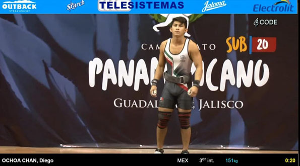 Ochoa Chan, terminó en la modalidad de Arranque con 117 kilogramos, mientras que en Envión levantó 148 kilogramos, para un total de 265 Kgs., con lo que se ubicó en la cuarta posición general, detrás de Juan Martínez de Colombia, Santiago Villegas de Perú, Richard Ollo Rangel de Venezuela, Joseph Alec Darsingnymatt de Canadá y Caden Taiyo Cahoy, de Estados Unidos.