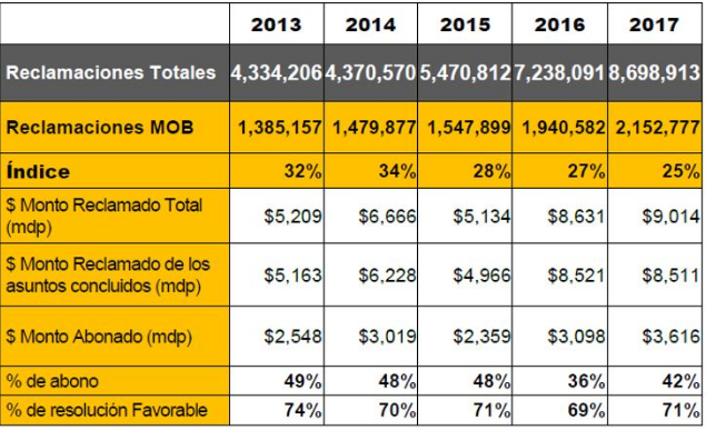 El 9 de abril la condusef emitió un boletín sobre los movimientos automatizados que realizan los bancos. Los MOB son: cargos automáticos o programados (domiciliaciones) por concepto de pagos de bienes, servicios y créditos; entregas de efectivo en cajeros automáticos (ATMs); cobros de intereses ordinarios y/o moratorios; cargos de comisiones; cargos de cuotas o impuestos; aplicación de depósitos, pagos o transferencias, entre otros.