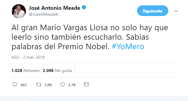 México a 3 de Marzo del 2018.- Días anteriores, el escritor Mario Vargas Llosa, realizó un comentario referente a Andrés Manuel López Obrador. Comparándolo con lo que se vive en Venezuela.