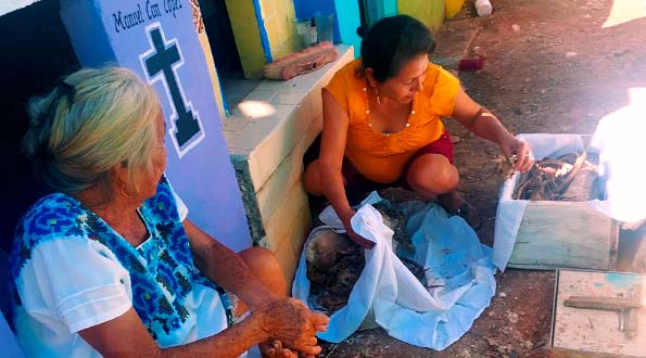 Pomuch, Hecelchakán a 23 de octubre 2023.- Previo a la actividad ancestral que practican las familias pomuchenses, sobre la limpieza de osamentas, el cementerio municipal recibe el mantenimiento correspondiente, desde la pintura y los dibujos abstractos en la pared que delimita en recinto sagrado, así como la llegada de visitantes extranjeros en esta ocasión acudieron visitantes de Hungría, sin dejar de mencionar la presencia de medios españoles, para llevar a cabo los pormenores de este rito ancestral que ha traspasado fronteras, dando a conocer este menester que se practica desde años atrás en este pequeño poblado enclavado en el sureste mexicano.