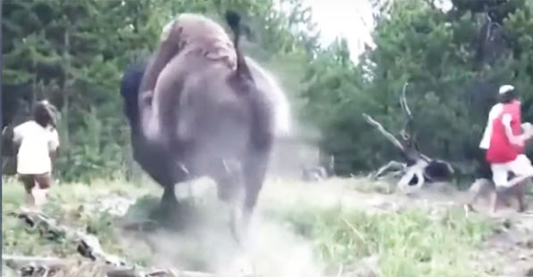 Estados Unidos.- Un bisonte embistió a una niña de 9 años a quien lanzo por los aires, los visitantes del parque nacional de Yellowstone grabaron el momento preciso cuando el animal ataco a la niña.