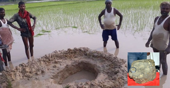 India.- Agricultores fueron sorprendidos por la caída de un meteorito mientras se encontraban trabajando en el campo de arroz en Mahadeva, perteneciente al estado Bihar en la India.