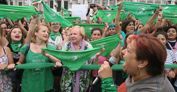 Buenos Aires, Argentina a 8 de Agosto del 2018.-Una marea verde se hizo sentir en Argentina tras el debate en el Senado argentino del Proyecto de Ley de Interrupción Voluntaria del Embarazo (IVE). Un grupo de personas se manifestaron con pañuelos color verde para mostrar su favoritismo a esta nueva ley en el país, que se pretende aprobar.
