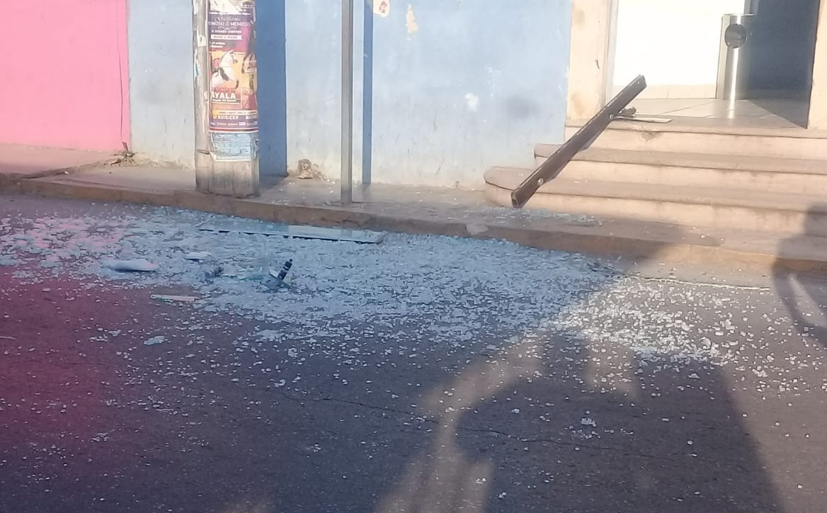 Calkiní, Camp. 16 de marzo del 2019.- Hace unos momentos, se desprendió la puerta de acceso al banco banamex de esta ciudad, por fortuna no hubo lesionados.