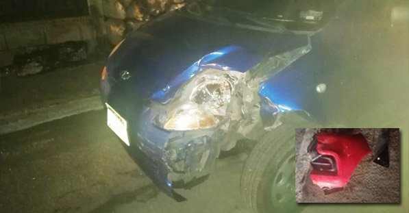Calkiní, Camp. 29 de septiembre de 2019.- Se registra un hecho de transito la madrugada de este día, donde el conductor de un vehículo compacto al parecer de la marca chevrolet tipo spark por el pedazo de fascia delantera que dejó en el accidente, impacta otro vehículo estacionado de la empresa chevrolet tipo matiz color azul, con placas de circulación DJF 5379, dejando la unidad aparcada a media calle.