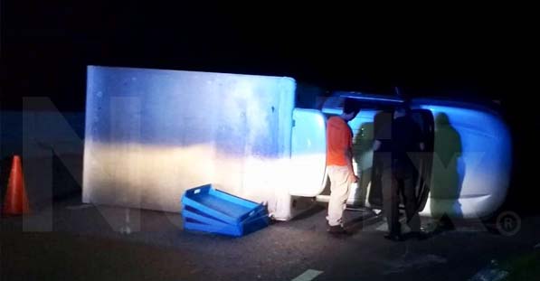 Pomuch, Hkan. 12 de septiembre de 2019.- Debido al cansancio Josue H. Holi Peña vuelca su camioneta de la marca NISSAN NP300 con placas YS0139B del estado de Yucatán tras dormitar, justo cuando circulaba en el kilómetro 54 de la carretera federal Campeche-Mérida a la altura del poblado de Pomuch. Hecelchakán.