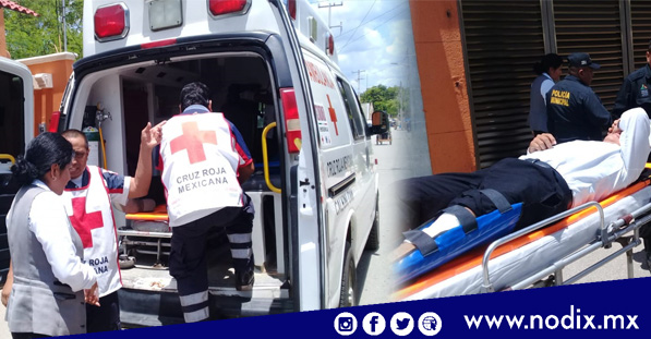 Calkiní, Camp. 13 de agosto de 2019.- Luego del fuerte impacto, el empleado de una tienda conocida, terminó con lesiones en el pie, tras chocar contra un moto-taxi, este hechos se registro sobre la calle 27 entre 20 y 18, barrio de san Luisito de esta ciudad de calkini.