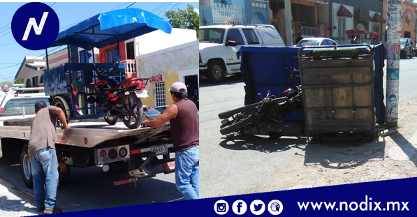 Calkiní, Camp. 22 de mayo el 2019.- Debido al descuido de un conductor de moto-taxi, ocasionó que su unidad se volcará con dos pasajeras abordo. El hecho se registró sobre la calle 15 entre 22 y 20 centros de la ciudad.