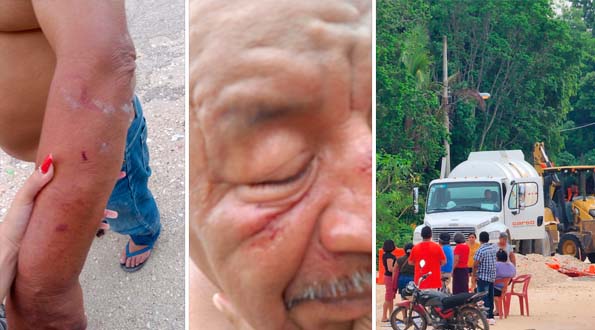 Felipe Carrillo Puerto, Champotón, Camp. 30 de Julio de 2023.- Supuestos simpatizantes de Morena opositores a la actual administración de la Junta Municipal de Felipe Carrillo Puerto y que mantienen bloqueado la construcción del paradero, propiciaron salvaje golpiza a un Trabajador del Tren Maya, que se les acercó a preguntar la razón de la protesta.