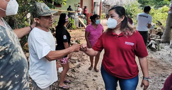 Emiliano Zapata, Tenabo, Camp. 29 de mayo de 2021.- Vamos a ganar la elección con votos el 6 de junio, porqué la gente está convencida que está en el equipo ganador y tendrá mejores oportunidades refirió la candidata de Morena para la Presidencia del Municipio de Tenabo, María del Carmen Uc Canul, ante decenas de simpatizantes reunidos en la localidad de Emiliano Zapata después de una intensa caminata, donde estuvo acompañada de la candidata de Morena por la presidencia de la junta municipal de Tinún, Elizabeth Osalde.